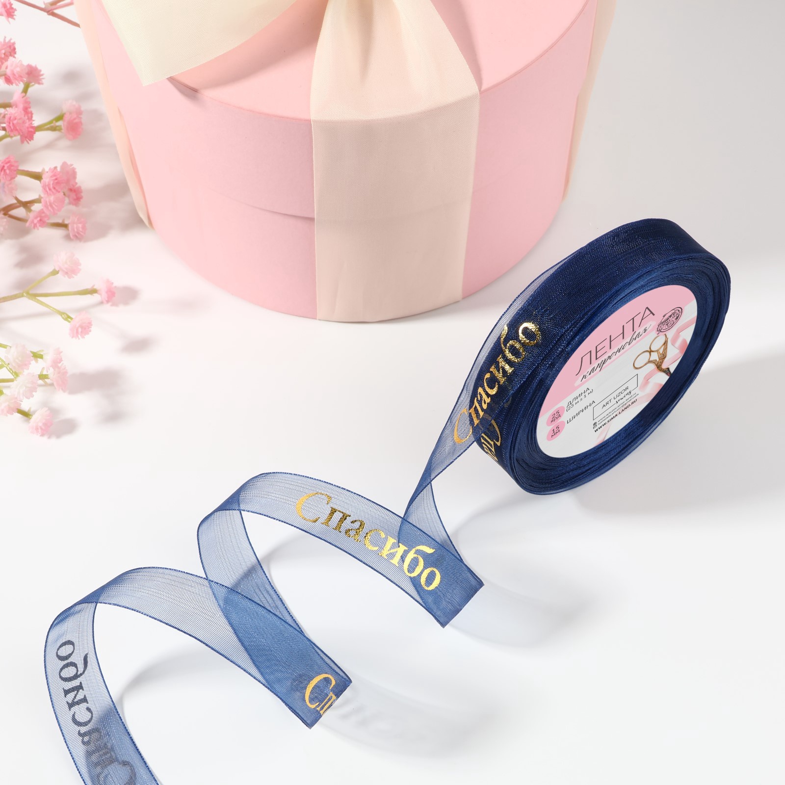 15 мм × 23 ± 1 м,"Спасибо" темно-синяя золотая с тиснением75.00