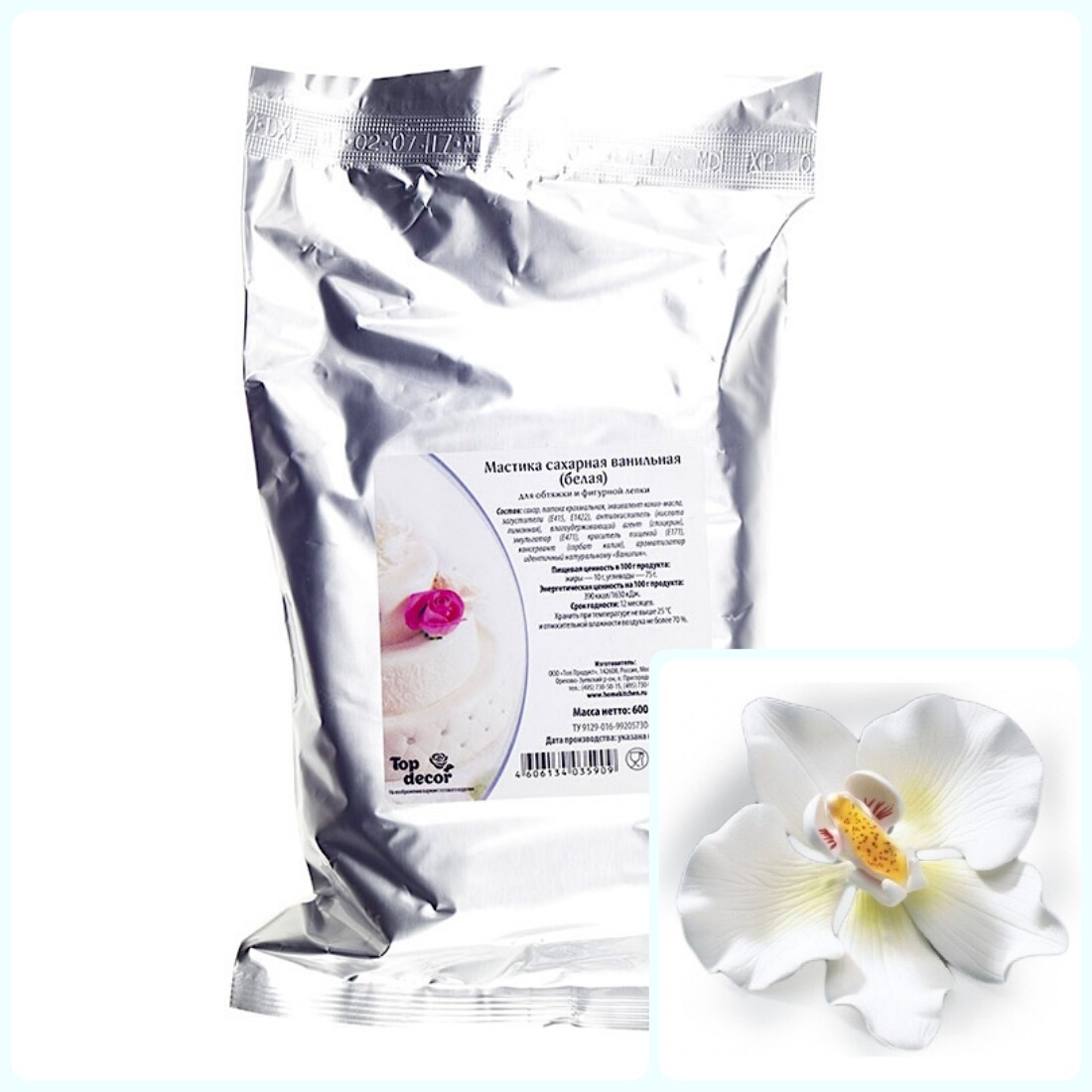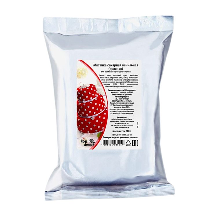 Мастика представляет собой сахарное тесто, которое используется для декорирования тортов и других кондитерских изделий. Подходит для обтяжки тортов и пирожных, а также для изготовления декора (фигурная лепка). Мастика хорошо окрашивается водорастворимыми красителями.