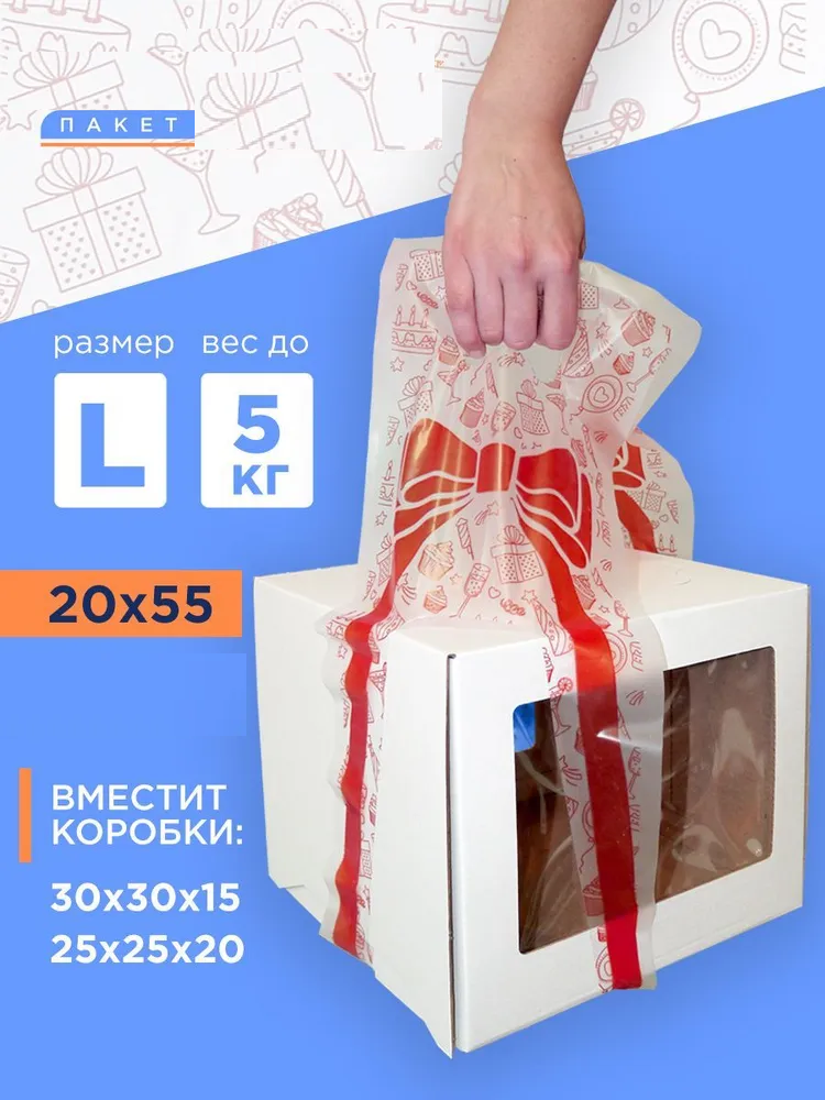 для тортов L с принтом прозрачные 20 x 55 см15.00