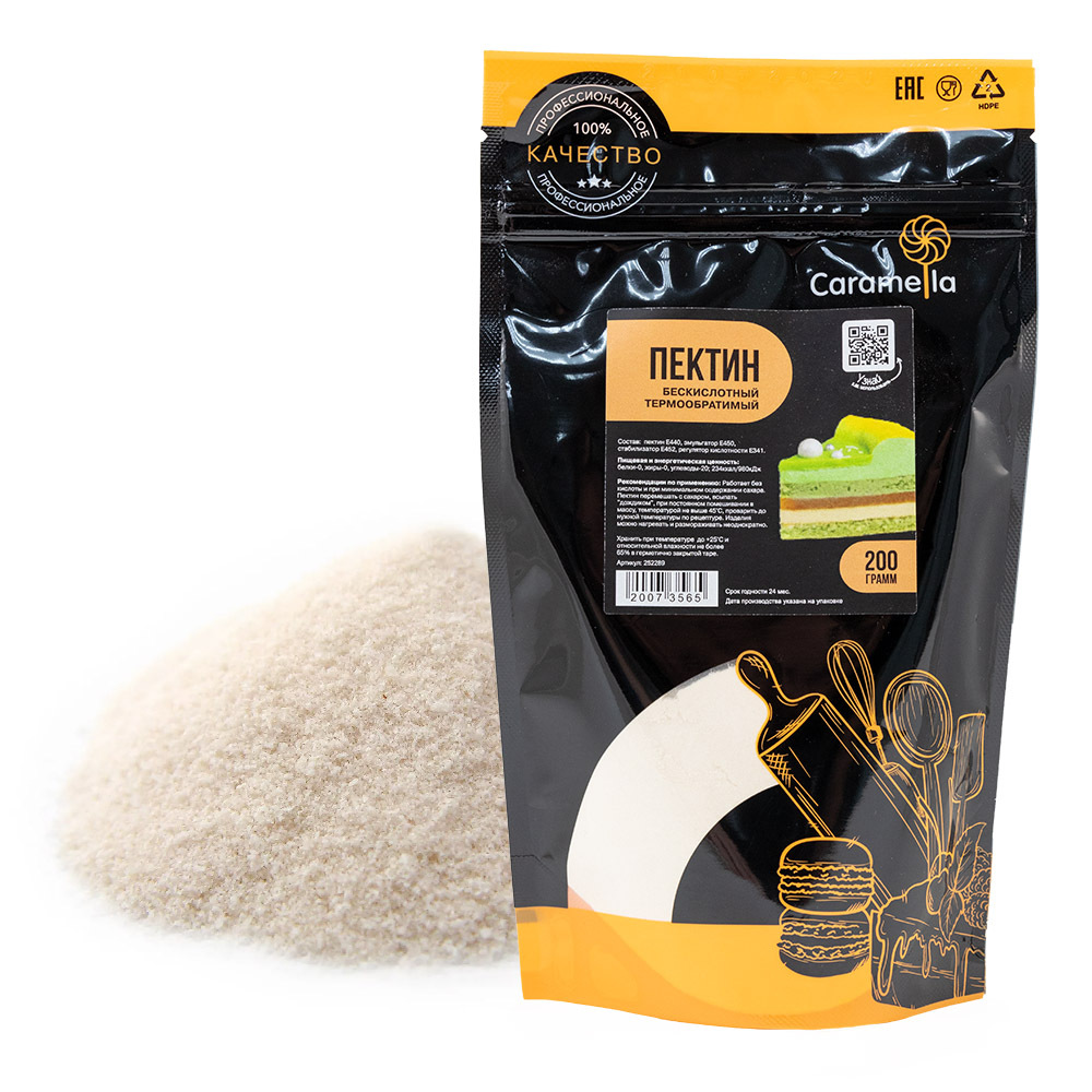 Пектин NH – термообратимый, при нагревании он растворяется, а при охлаждении застывает. Массу с ним можно повторно нагреть и снова перезалить в нужную форму. Он используется для конфи и компоте – начинок в тортах, которые необходимо замораживать, для зеркальной глазури и начинок для корпусных конфет.